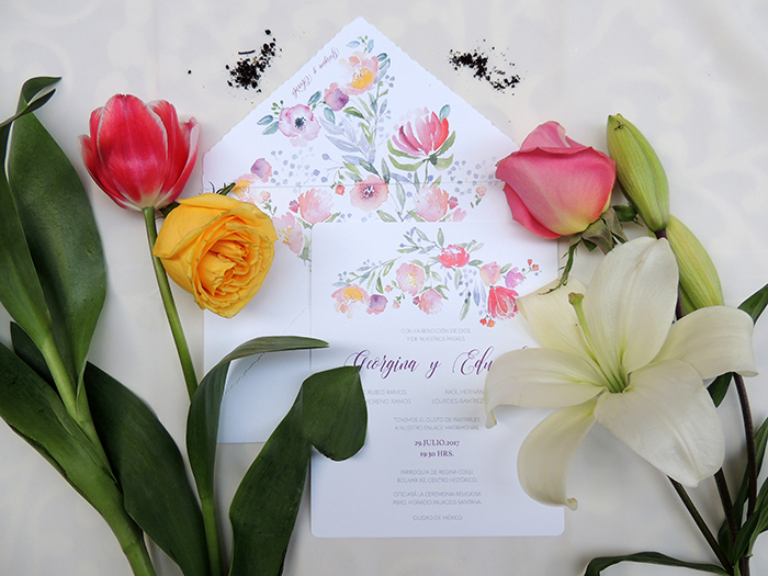 Acerca de la invitación: Las flores pintadas en acuarela son sensuales, románticas y hermosas, siendo excelentes para decorar tus invitaciones de boda.